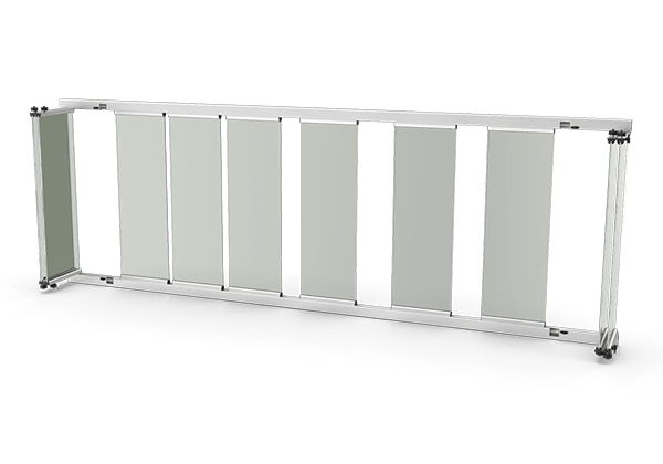 - Rieles superiores e inferiores: Los paneles se deslizan sobre rieles montados en la parte superior e inferior de la estructura. Estos rieles guían el movimiento de los paneles y aseguran su estabilidad durante el uso.