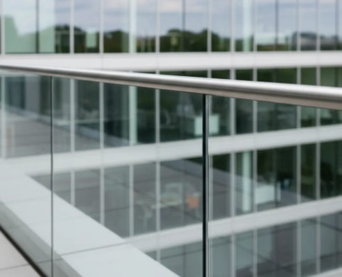 Un toque de diseño y seguridad en pasillos, altillos o escaleras dentro de oficinas diáfanas, aportando transparencia y profesionalidad.